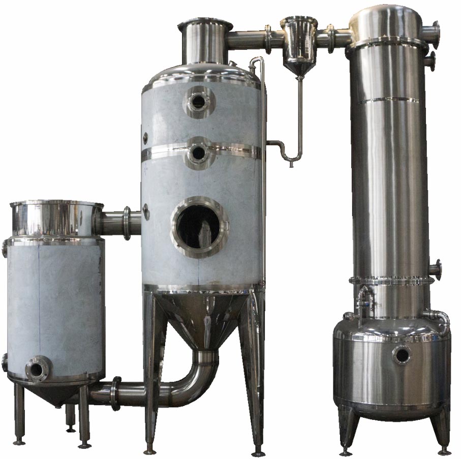 單效外循環(huán)真空濃縮器,由加熱器、蒸發(fā)器、除沫器、冷凝器、冷卻器、受液罐等組成,凡與物料接觸部件均采用優(yōu)質(zhì)不銹鋼制作,本設(shè)備
